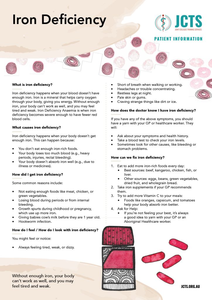 Iron deficiency happens when your blood doesn’t have enough iron. Iron is a mineral that helps carry oxygen through your body, giving you energy. Without enough iron, your body can’t work as well, and you may feel tired and weak. Iron Deficiency Anaemia is when iron deficiency becomes severe enough to have fewer red blood cells.