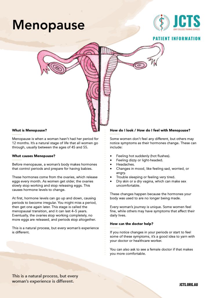 Menopause is when a woman hasn’t had her period for