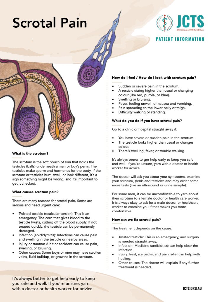 There are many reasons for scrotal pain. Some are serious and need urgent care: